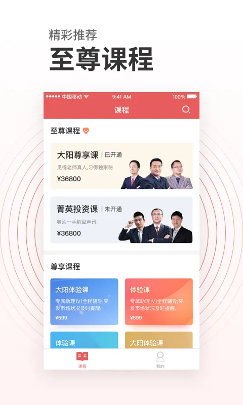 投资易课最新手机版是理财 app,有丰富投资课程与实时盘面分析解答。名师坐镇,海量课程涵盖全面,支持视频教学、直播授课。能记录学习进度,自动推荐精品课,可在线支付买课,搜索找资源,助用户提升投资技能。