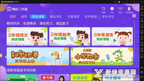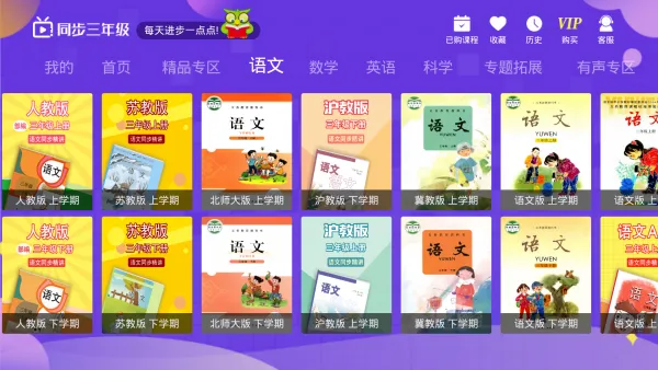 1. 海量实用课程资源:涵盖全国各地区和学校教材版本,同步提供语文、数学、英语等多学科视频课程,还有专题拓展、课外拓展、经典国学等丰富内容,满足三年级学生多样学习需求。
