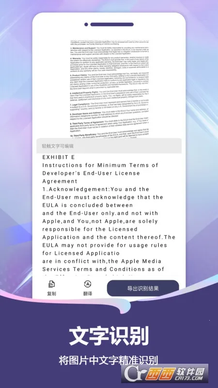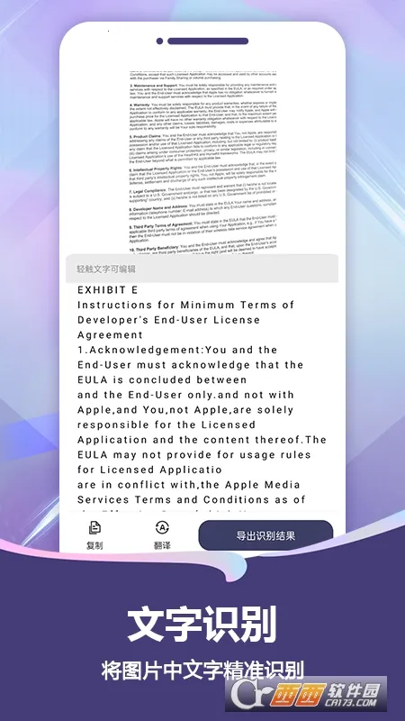 2. 精准文字识别强:运用强大的OCR文字识别技术,能精准识别扫描的文字内容,支持中文、英语、日语、法语、德语、俄语、葡萄牙语、西班牙语、意大利语等多种语言,还可将其快速转换为可编辑的内容,轻松处理各种文档。