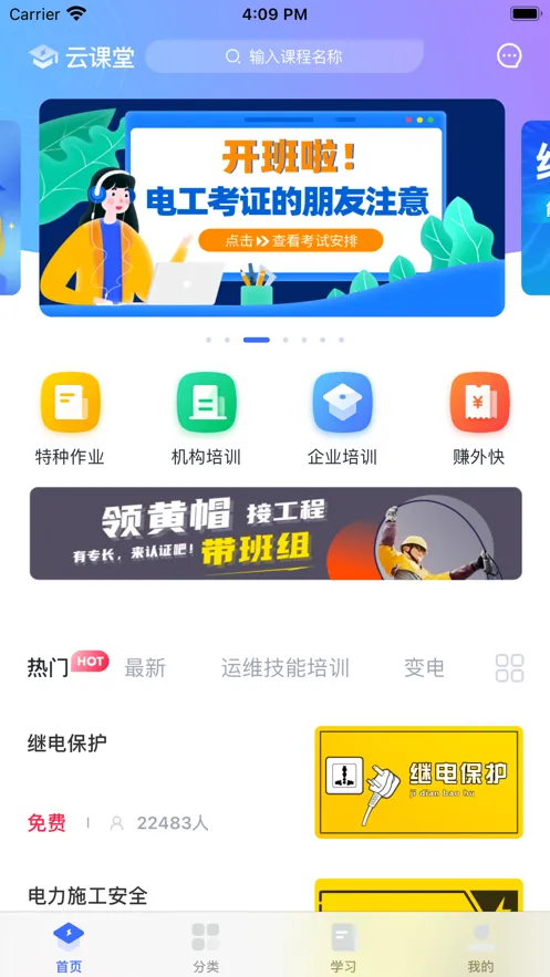 2. 学习资源丰富:拥有数千名专业电力讲师,提供海量优质课程,涵盖变电运行与检修、线路运行与检修等热门分类,还有直播教学和公开好课,助力电工提升知识水平。