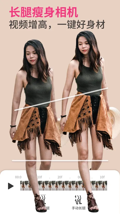 2. 身材重塑:自动瘦身瘦腰,一键获得苗条身材,自动瘦腿,一键拥有大长腿,微调身体重塑好身材。