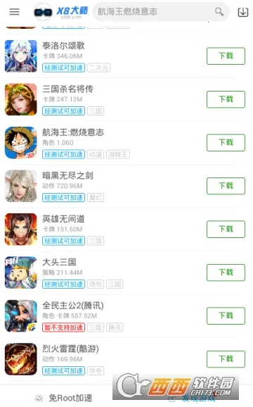 x8加速大师能帮你轻松解决游戏加速问题。它无需root权限,下载完成即可直接使用,经过多重安全测试,毫无使用风险,也不用进行激活和设置。不管是网游还是单机游戏,它都能为你加速,让你在游戏世界里畅行无阻,快速完成通关任务。