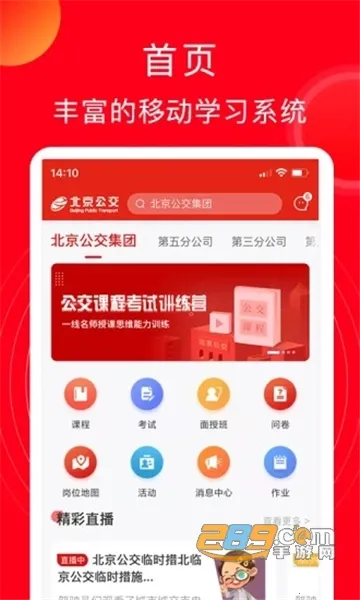 公交云课堂是专为公交行业从业者打造的数字化学习平台,提供碎片化学习方式。有海量课程、在线考试、智能监考等功能,支持线上线下培训,能让从业者利用碎片时间提升,实现学练考评测五位一体。
