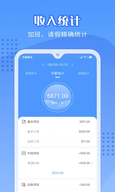 2. 多维度设置:满足工作日、休息日、节假日不同时段加班计费需求,适配多种计薪方式,如正式工、合同工、小时工、临时工等,还能自定义补贴扣款,让薪水记录更准确。