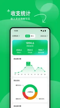 4. 智能报表实用:能够自动生成详细的支出占比饼图与消费趋势图,使用户一目了然地了解资金流向,便于针对性改善消费情况。