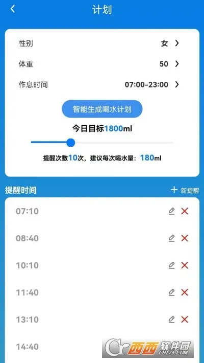3. 贴心提醒功能强大:能设置多个时间提醒,即使忙碌时忘记喝水,也会及时提醒,确保不错过每次喝水,还可自己定义喝水时间,养成健康喝水的好习惯。