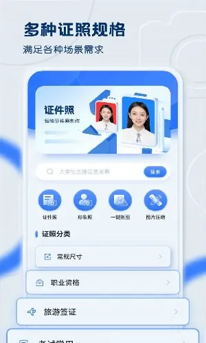 1. 多种规格覆盖广:涵盖日常、考试、签证、职业资格等各类证件照需求,无论是身份证一寸二寸照,还是办签证、考学历、考职业资格证所需的证件照,都能轻松找到对应模板。