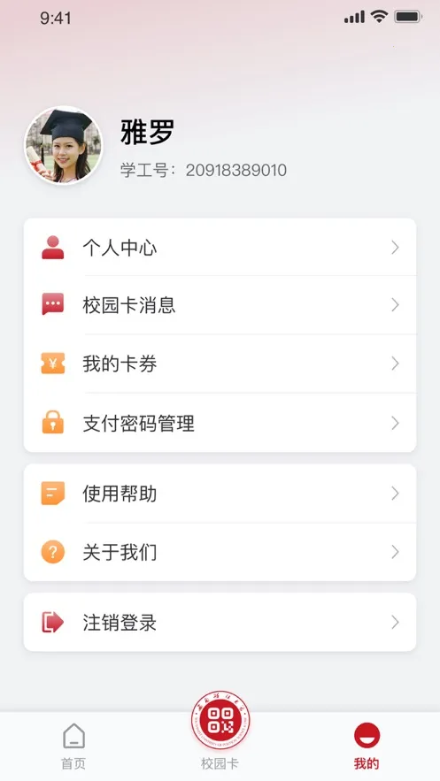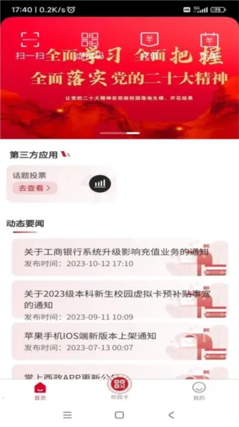 2. 便捷校园卡功能:支持二维码进出校门,无需实体校园卡,简化通行流程,还能在线充值消费卡,方便快捷。