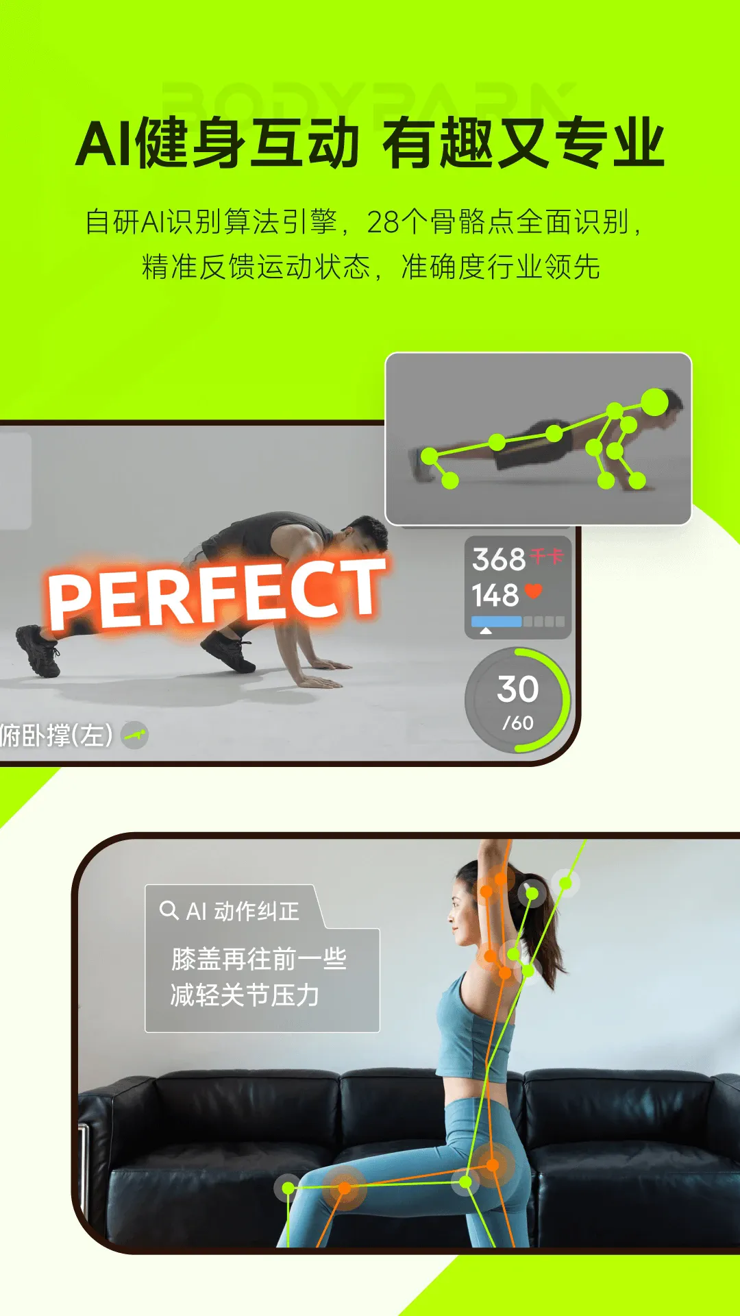 它功能超强大,有大量涵盖各难度级别的健身课程,不管你是新手还是有经验,都能找到适合自己的。独特的AI体感技术,能智能纠正动作,保证锻炼安全有效。而且还有AI真人在线私教课程,专业教练亲自授课,实时互动,精准捕捉并纠正动作。