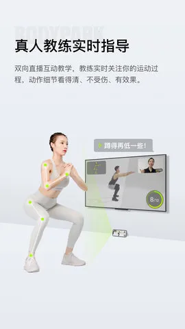 BodyPark能解决你健身时的各种问题。觉得录播课没意思?真人在线私教来帮你。担心动作不规范?AI体感技术和专业教练为你保驾护航。想塑形减肥或锻炼特定部位?专业教练会提供个性化训练计划。