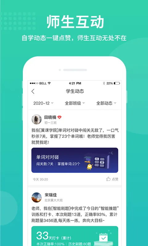 1. 高效教学助手:支持教师随时随地布置检查作业和考试,系统自动批改出结果一键奖评,最大限度释放教师精力,通过手机轻松提高教学效率。