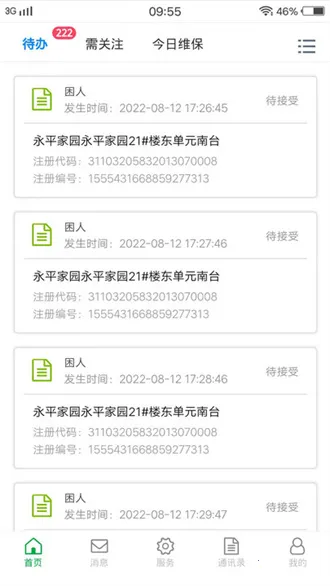 1. 待办任务清晰呈现,方便维保人员及时处理各项任务,掌握详细故障说明、时间及地理位置等。