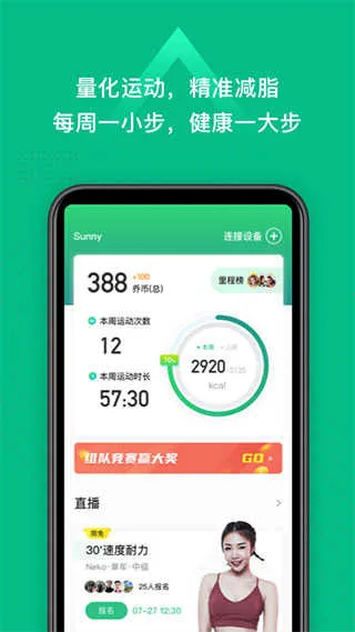 多元课程类型:软件功能在线课程直播涵盖跑步机、动感单车、无器械训练、舞蹈、瑜伽等多元课程类型,百名资深教练每日轮番开播,明星教练全程带练,把专业健身变成一场有趣有料的直播互动。