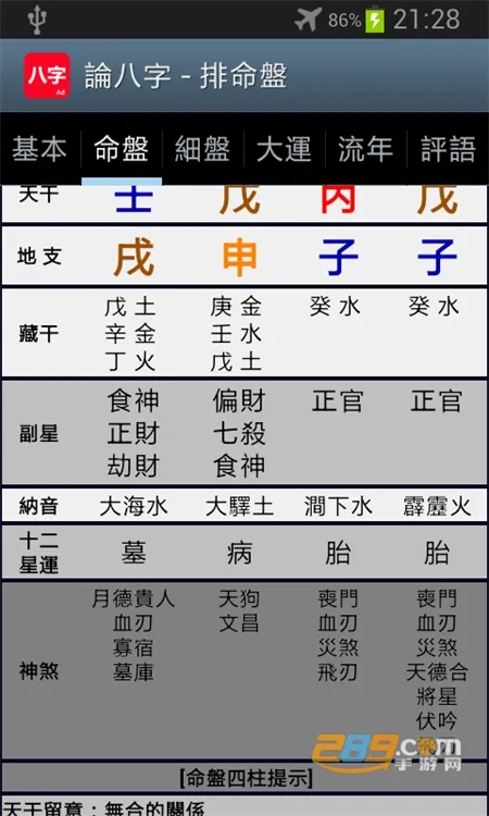 2. 操作简便:界面简洁,操作流程清晰易懂。查看八字信息时,只要保证生日数据正确,在首页点击列表里的星盘功能,再从星盘页面底端找到八字功能,软件就能根据设置的生日给出相应数据,轻松完成排盘。