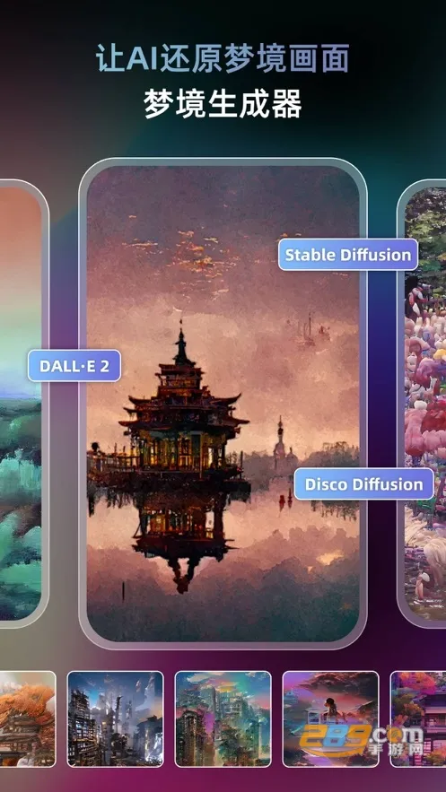 1、下载后打开软件进入首页,可以选择AI生成艺术作品或者是AI生存梦境幻象。
