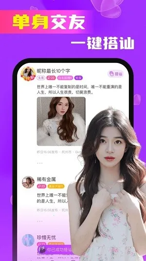 在寻找交友软件时,你是否渴望能找到一款真正契合自己的?有一款软件值得关注。它能让来自不同城市的用户依据位置查看附近的人,方便至极。还能实时分享生活趋势,展现最真实有趣的自己。软件里每个用户都能交朋友,有一对一聊天室,智能匹配对象在线聊天。能轻松找到合适的人交朋友,提供良好社交氛围,可随时给感兴趣的人发信息。在这里找对象更可靠,专为脱单者设计,助你轻松结识更多人,找到未来合作伙伴,带来很好的体验,让你随时享受聊天交友的乐趣。