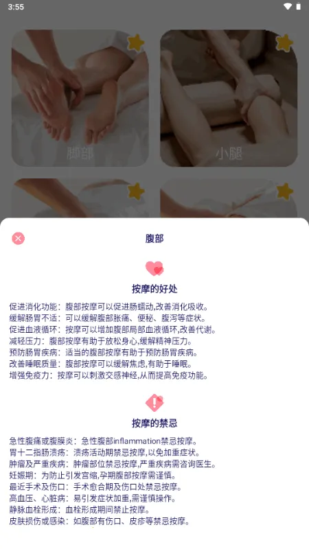 3. 多种益处:如同传统按摩一样,具有促进消化功能、缓解肠胃不适、促进血液循环、减轻压力、预防肠胃疾病、改善睡眠质量、增强免疫力等诸多好处。