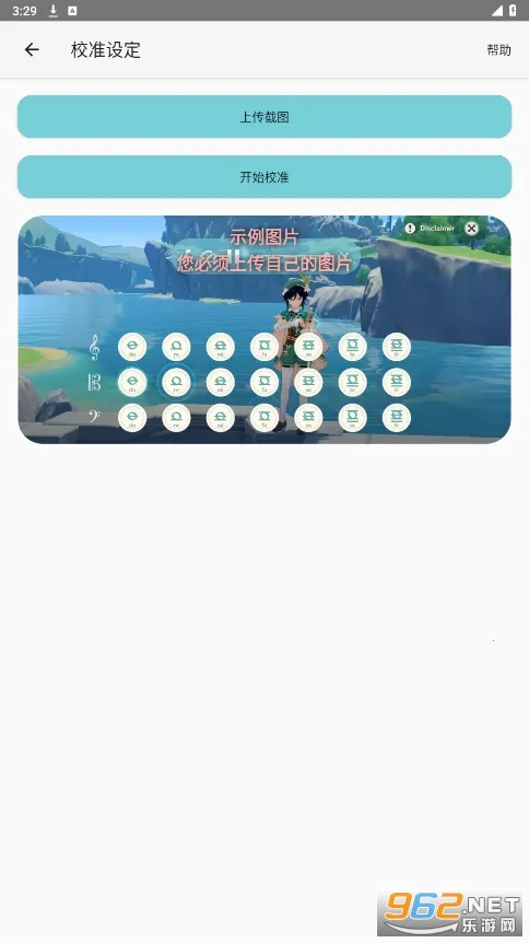 4、现在我们需要校准应用程序,从相册中选择游戏截图后,单击仪器的左上方键,确保目标都与键对齐。