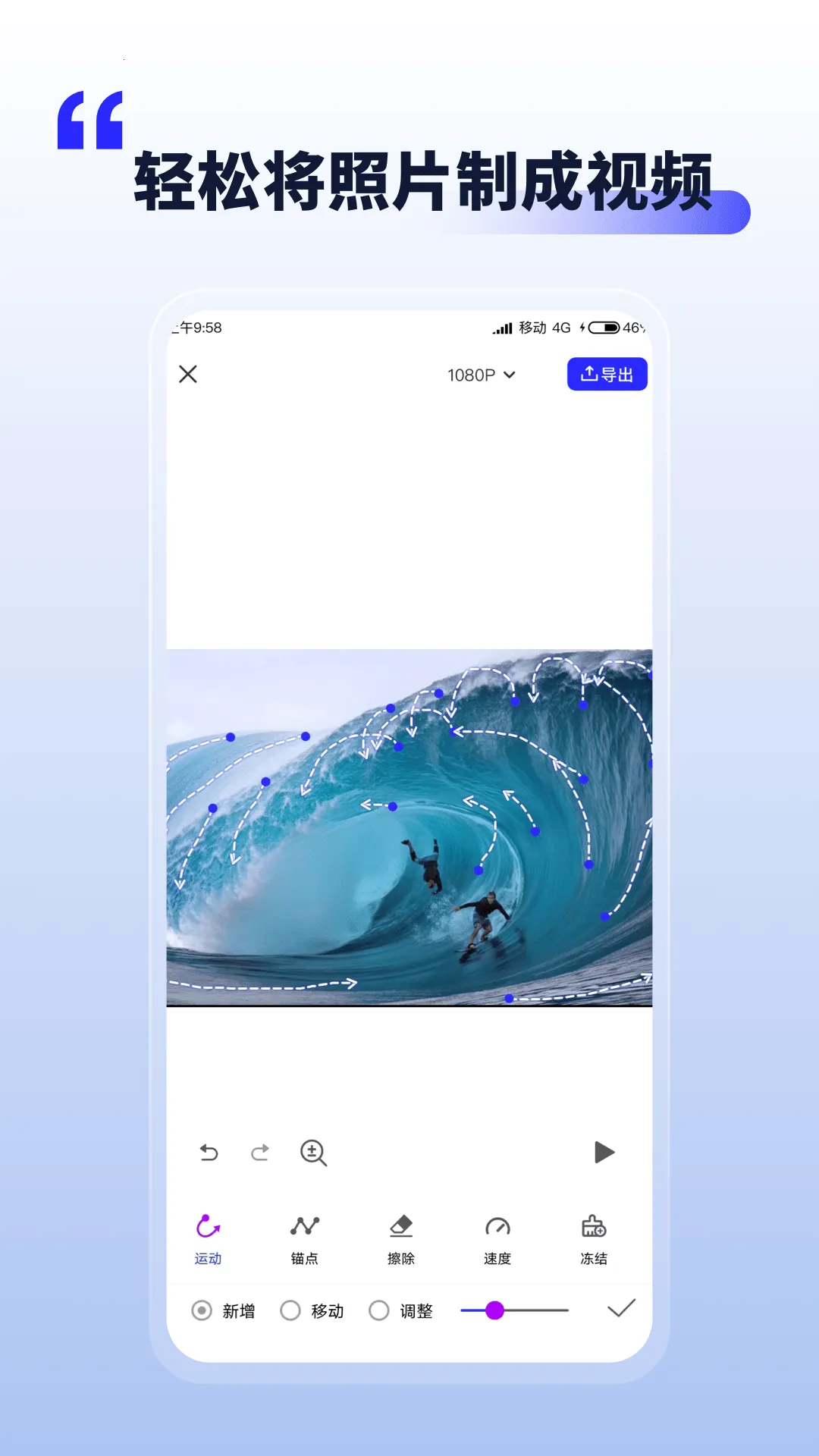 想让照片动起来?有这样一款超棒的软件能满足你!它采用人工智能技术,能让照片中的人物动起来,还支持老照片修复上色,自动合成照片视频,并且可以调节视频的配字以及配乐。软件功能超强大,有一键美化功能,能裁剪旋转、加特效滤镜、智能补光、添加水印边框等,让照片瞬间高大上。还有多样式图片编辑功能,能抠图、加水印、美颜、消除、裁剪等。丰富素材免费使用,操作简单易上手。能帮你轻松制作视频动图,把视频转成GIF动图。不管是想给照片加点动态效果,还是处理老照片,它都能搞定,轻松满足你让照片动起来的需求,给你带来不一样的照片编辑体验,快来试试吧!
