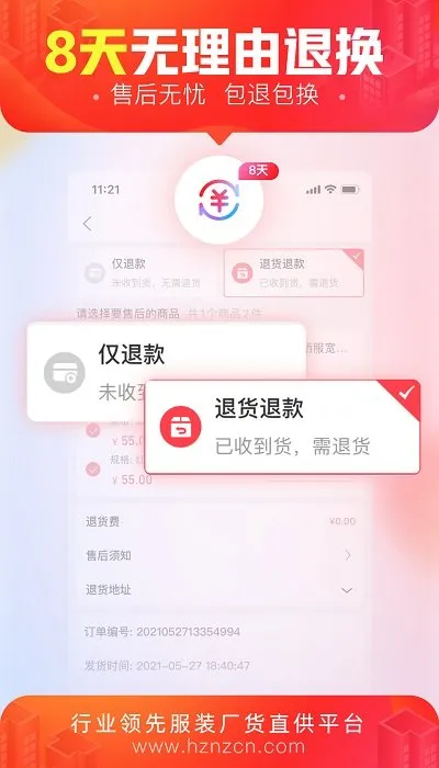 2. 创业无忧:支持批发价单件代发,无需囤货的代理开店服务,极大减轻库存压力和资金门槛,让零经验卖家轻松开启服装生意。