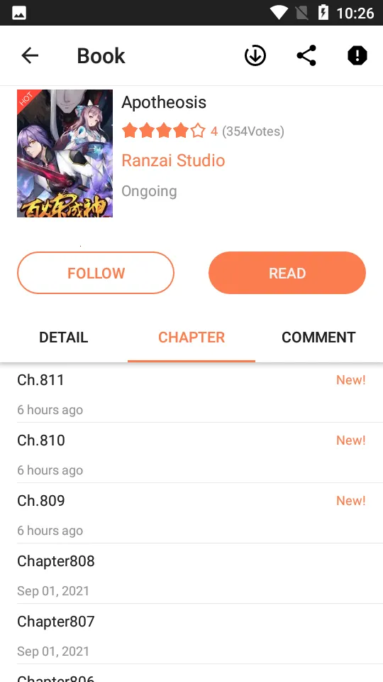 3. 支持离线下载,没网也能随时看。单指滑动操作,单手就能轻松追漫。