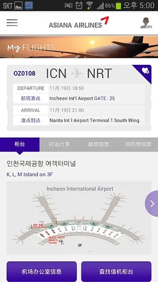 韩亚航空安卓版APP由韩亚航空北京办事处推出,功能全,覆盖机票预订、值机查询等。操作简单,五步完成订票。提供多类服务,页面简洁,还介绍了使用说明、值机等操作方法,最新版本有系统优化和纠错。
