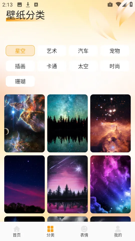 2.进入首页后,点击底部的“分类”选项,即可浏览不同风格的壁纸内容