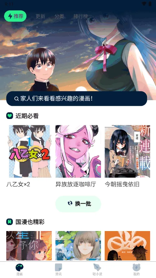 海量资源:再漫画整合了漫画、轻小说和资讯三大板块,国内外热门及经典作品一应俱全,涵盖国漫、美漫、日漫等多种类型,资源丰富多样,满足不同用户的阅读需求。