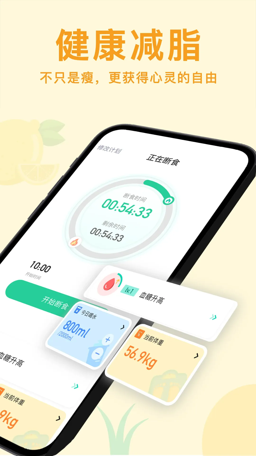 2. 可记录体重变化与断食过程,直观见证身体逐步改变。