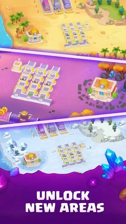 1. 丰富多样的探索区域:能带你从宁静草地到神秘森林,再到酷热沙漠和冰封雪原,每个地点都有全新挑战与奖励,可找到珍稀宝石及升级道具资源,乐趣无穷。