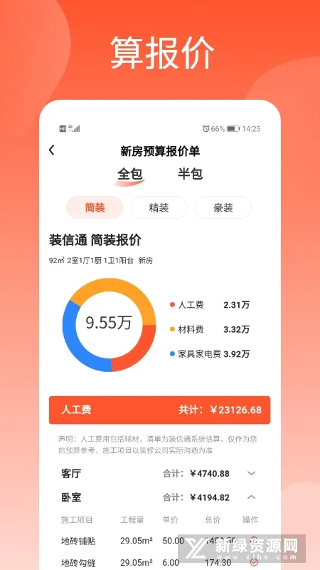 2. 智能报价精准:基于96项明细清单,10秒生成科学报价,能有效避免预算超支风险,让你提前清楚装修花费。