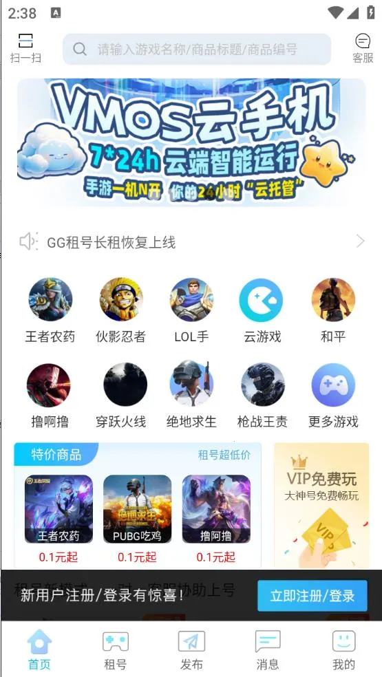 GG租号APP是安全可靠的游戏账号租用平台,提供LOL、CF、吃鸡等游戏账号及加速器租号服务。有百万优质账号,多种上号方式,24小时客服,保障账号安全,让玩家放心租号畅玩,0.8元起租。
