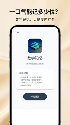 这款软件热度超高。它能帮用户拓展大脑,提升记忆力。操作简单,能让思维能力增强。基于时间感知智能训练调度,任意碎片时段可用。内置标准化神经行为测评套件,完成后生成结构化评估报告。实施渐进式工作记忆强化机制,集成双任务并发训练模式。构建动态适应性训练路径,自动生成差异化训练组合。有数字挑战、舒尔特方格等特色功能。亮点是任务简短,利用空闲时间,6分钟锻炼大脑,训练后生成专属报告。能满足大脑训练需求,实时扩充大脑容量。