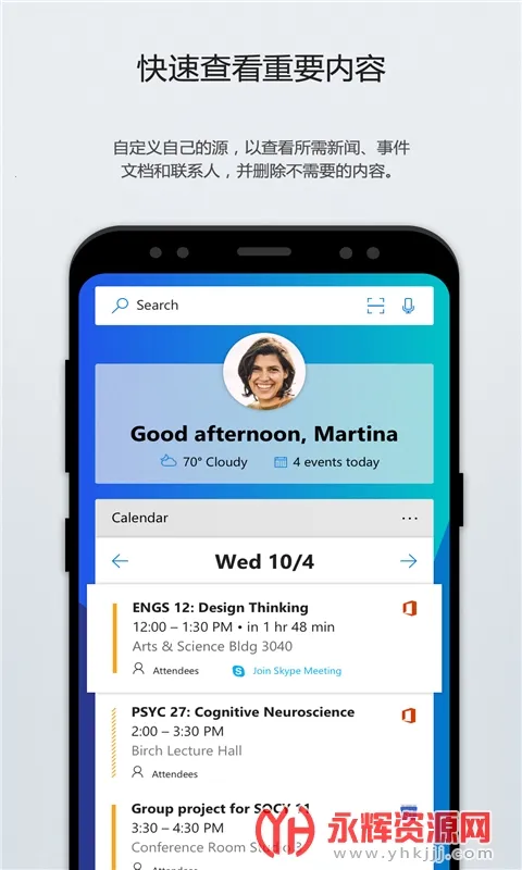 2. 多设备协同:借助Microsoft帐户或工作学校帐户,可在个性化源中访问日历、文档和最近活动等。还能与Windows电脑相连,在手机拍照后即时在电脑查看,或继续编辑Office365文档,实现跨设备高效工作。