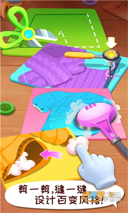 想让孩子成为时尚小达人吗?那就来试试《宝宝时尚设计师》吧!这是一款超棒的儿童早教游戏,能在百度手机助手上轻松下载。游戏里服装款式超多样,上衣、短裤、连衣裙等任你搭配,还有海量制衣材料,花色布匹、柔软棉花等应有尽有。实用裁缝工具模拟操作,像缝纫机、熨烫机等,锻炼孩子动手能力。孩子能体验完整制衣过程,量尺寸、裁布匹、缝纽扣、熨衣服全了解。还能模拟经营商店,接待顾客制作衣服赚金币。能培养孩子审美标准,开发想象力创造力。让孩子在游戏中发挥创意,设计独一无二的服装,享受时尚设计的乐趣,轻松赢在起跑线,快来百度手机助手下载吧!