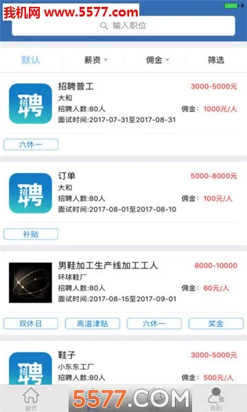 1. 支持多种类型工作搜索筛选,无论是兼职全职,技术或服务岗位,都能轻松找到。