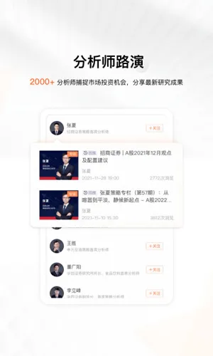 1. 专业投研分析:聚合大量专业分析师深度研究成果、上市公司调研及行业专家产业解读,为投资者提供高质量投资决策支持。