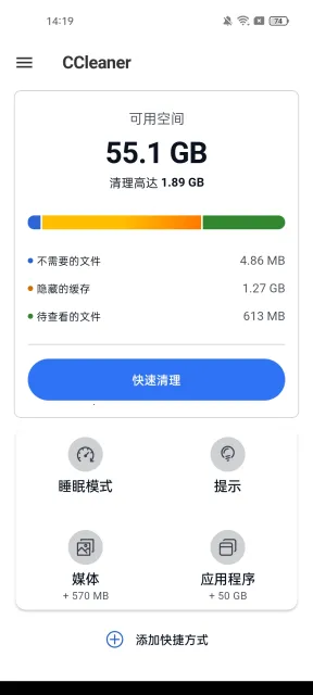 CCleaner是一款手机清理软件,由PC端移植而来。能清除垃圾文件、缓存等,监控系统。操作简单,界面简洁,支持多语言,兼容性强,可深度或自动清理,还能管理应用、释放空间,让手机运行更高效。