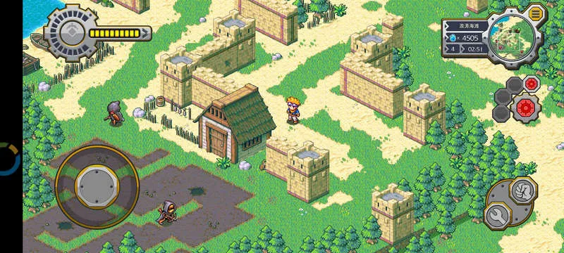 玩法简单易懂,下载安装后,点击开始新游戏,跟着剧情走,爷爷会给任务去海边修筑围墙,与埃米交谈后进入建造模式,拖动围墙放置好,还能旋转、售卖调整。之后建造炮台抵御发条人进攻,击败敌人可搜刮源能建造或修理构筑物。战斗时,左边摇杆控制角色移动,右边按钮与NPC互动,点击切换建筑、放置建筑,放好后点击红色按钮开战,可操控角色或看炮塔杀敌。无需修改就能玩中文版本,通过剧情还能揭开王国秘密,赶紧来体验吧!