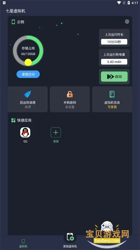 1、操作便捷,一键添加、查看虚拟机信息,还能自由添加快捷应用,支持设置开机密码。