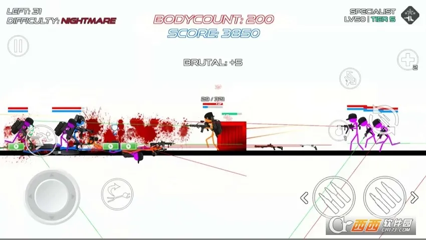 火柴人战争复仇打击正版是一款超刺激的游戏。它以极简火柴人画风、经典横版视角呈现快节奏射击动作。玩家化身火柴人战士,在枪林弹雨中与全副武装的敌对部队对抗。操作简洁有深度,左右移动精准射击,配合丰富武器与角色成长体系,带来酣畅战斗体验。有九大专属特权系统,超200种真实感武器库,36项实用技能体系,个性化外观系统,多元游戏模式,支持本地多人联机和全球实时排行榜,开发团队还持续更新,可玩性极高,绝对值得一玩!