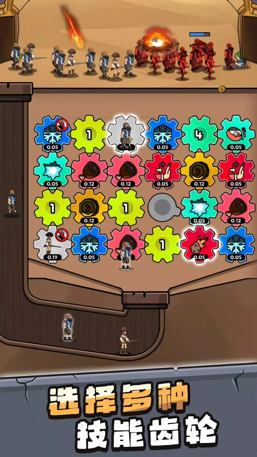 2. 轻松简单玩法:战斗、升级不复杂,无繁复数值培养体系和操作,操控齿轮产人类出击,简单数值轻松玩。