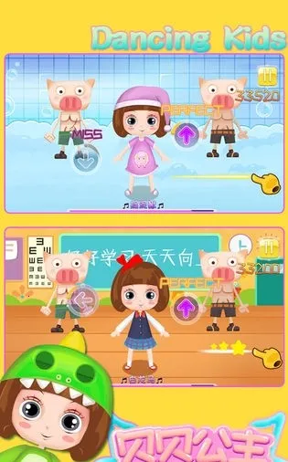 2. 趣味互动模式:设有简单和困难两种难度模式,适合不同年龄水平孩子。完成舞蹈挑战可获星星奖励与鼓励徽章,解锁新服装和曲目,还能参与表演获评分与建议,持续提升舞技。