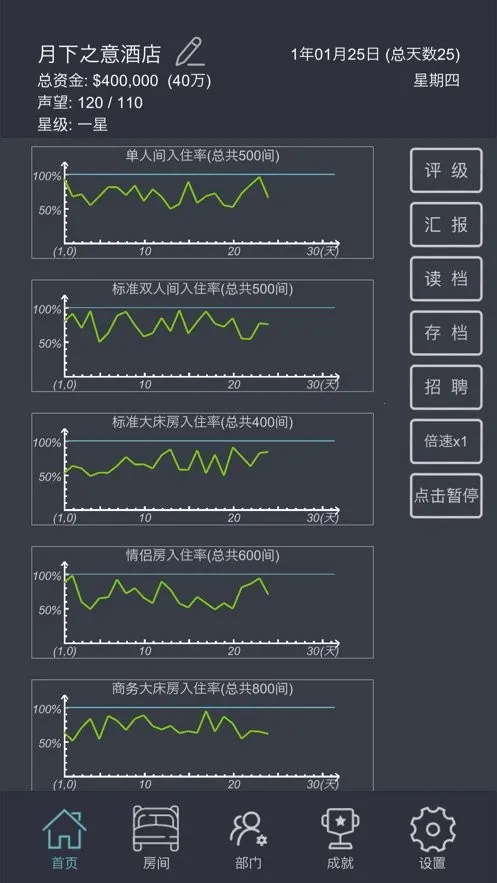4. 特色功能助力:资金积累后可扩大饭店规模、招揽人才、提高效率;运营期间能通过奢华管理旅行快速晋升星级;存档功能可随时保存和重置游戏进程。