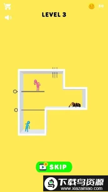 绳索益智救援是一款拉针解谜游戏,玩家拔出插销引导红蓝小人会合过关。有大量关卡,难度递增,操作简单,场景多样,解谜挑战多,考验观察力与逻辑思维,能让玩家在益智闯关里获乐趣、解压力。