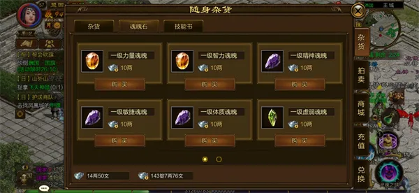 随身商店会出售魂魄石,绑定银两就能购买。根据自己的喜好选择要购买的魂魄石,魂魄石的合成基数为5个,根据你预计达到的魂魄石等级,以及当前的魂魄石剩余数量来考虑具体的购买数量哦。