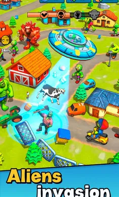 1. 独特融合玩法:游戏巧妙融合了塔防机制、动作和策略元素,玩家操控飞碟穿梭关卡,吞噬物体获取资源与经验,升级增强能力,对抗僵尸入侵,带来前所未有的游戏体验。