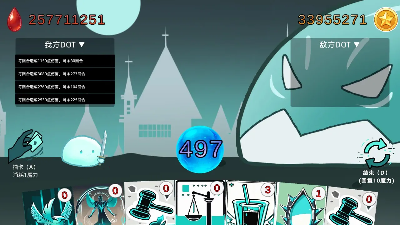 2、丰富DOT效果:释放卡牌叠加流血等DOT效果,让敌人每回合承受持续伤害。