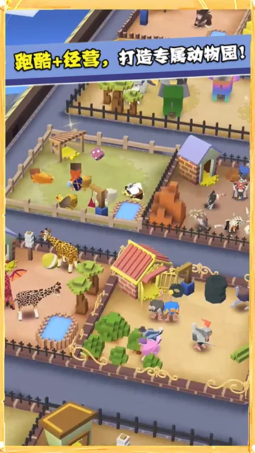 3. 深度的模拟经营玩法:捕获的动物可转化为园区资产,跑酷成果即时反馈到建设进度。园区自定义自由度高,支持打造主题展区,从驯服饲养到经营,吸引游客光临赚取金币,带来丰富游戏体验。