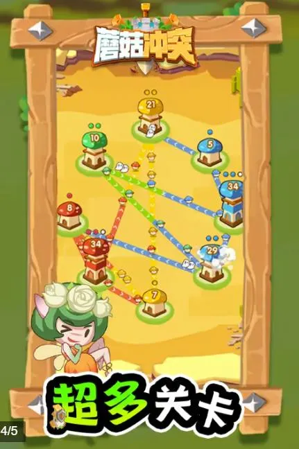 3、策略对战:玩家需组合蘑菇军团,合理安排作战,通过占领灰色建筑增加增值能力,运用策略和技能搭配,带领军团征战城堡。